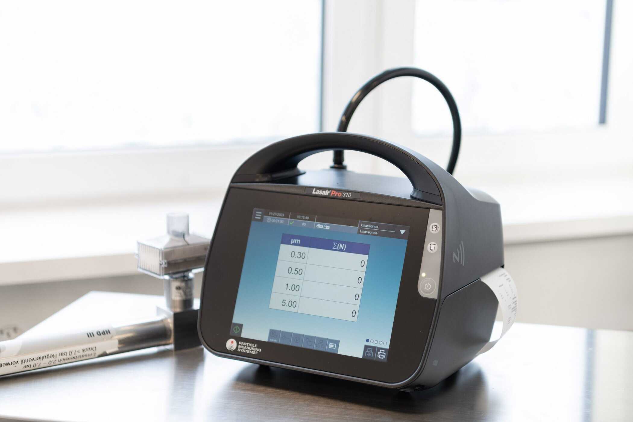 PMSS verwendet den branchenführenden Partikelzähler Lasair®Pro und den mobilen MiniCapt® Luftkeimsammler. Diese Instrumente werden von unserem hauseigenen SCS 0118-zertifizierten Labor vollständig kalibriert. Zusätzliche hochmoderne Instrumente, die PMS verwendet, werden von einem von der Schweiz akkreditierten Drittlabor vollständig kalibriert, wodurch unsere Unparteilichkeit gewahrt bleibt. Auditbereite Kalibrierungszertifikate werden mit Ihrem Abschlussbericht geliefert.